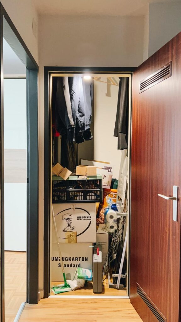 Du hast zu Hause eine kleine Kammer, die mehr Abstellfläche als Raum ist? Willkommen im Club! In diesem Beitrag zeige ich dir, wie ich die völlig chaotische Abstellkammer meines Freundes mit einem Makeover, wenig Budget, viel Farbe und einer klaren Struktur in einen funktionalen Lieblingsraum verwandelt habe. Perfekt für Vorräte, Kleidung, Schuhe, Taschen, Kabel – und alles, was sonst stört.