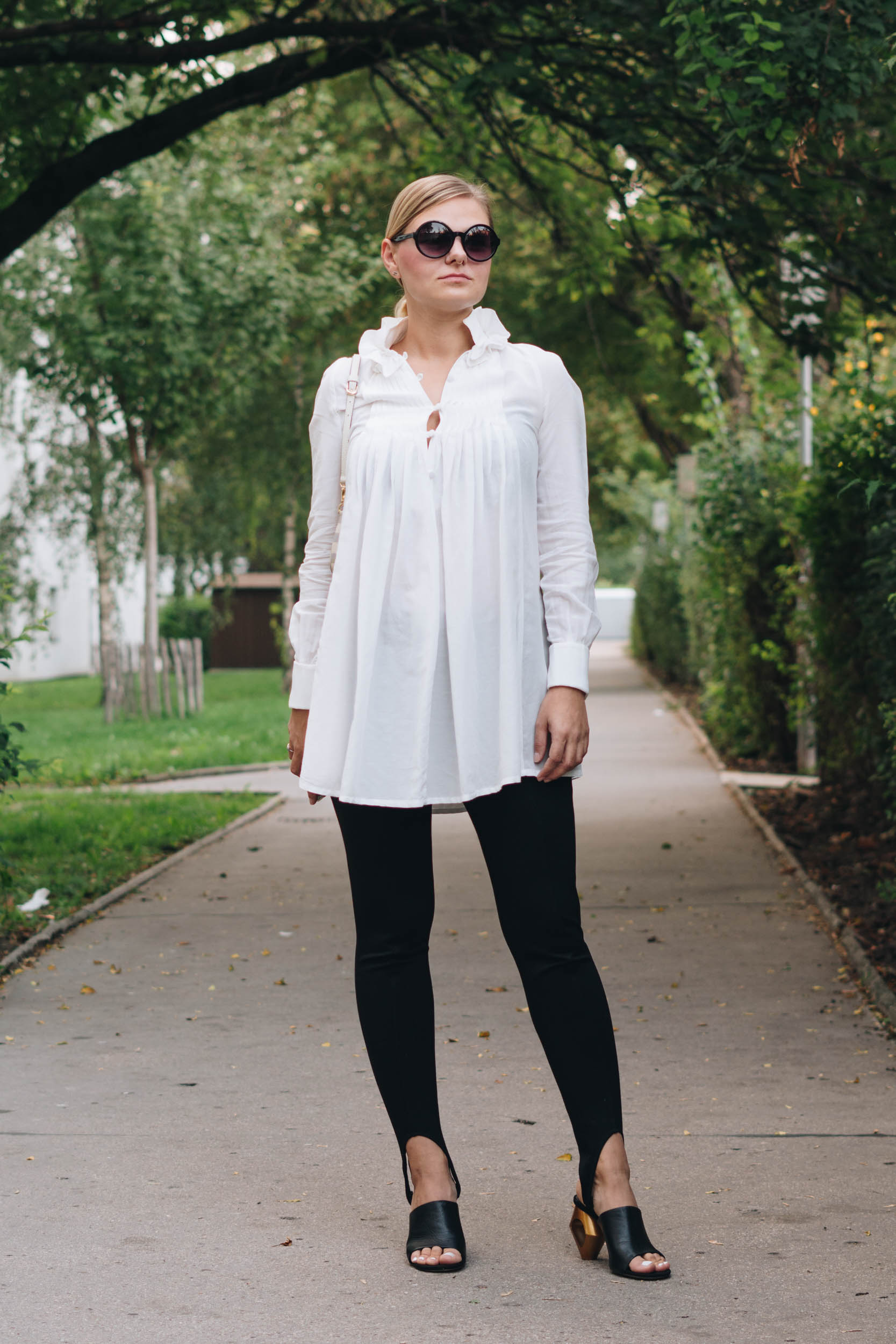 Bei Leggings bzw. Jeggings scheiden sich die Geister. Die einen sind große Fans und schwören auf die Vorteile und Vorzüge. Andere finden sie abstoßend. Heute zeige ich euch wie ich ein Paar Jeggings mit Fußschlaufen alltags- und bürotauglich mit einer schicken weißen Tunika kombiniert habe.