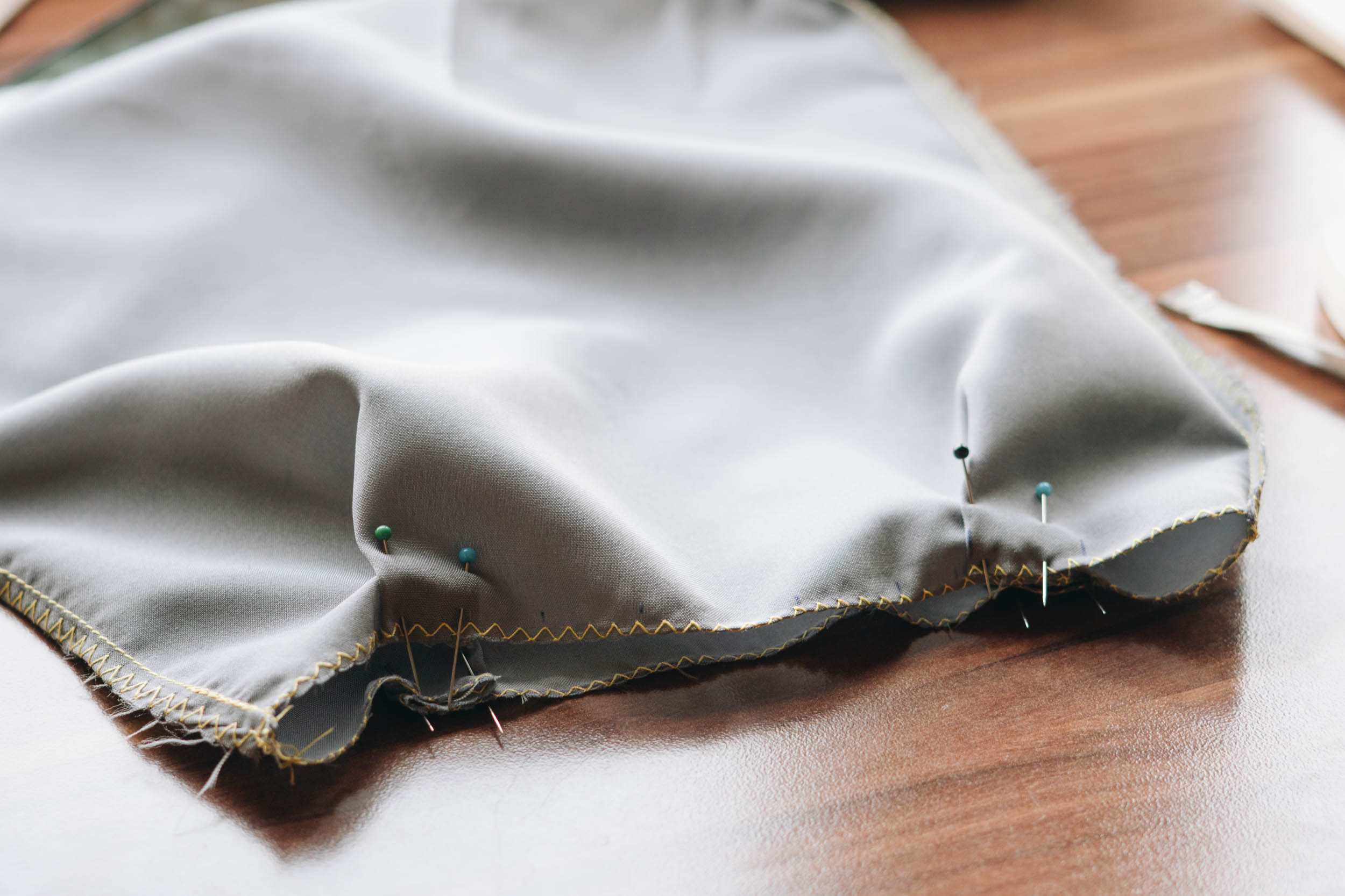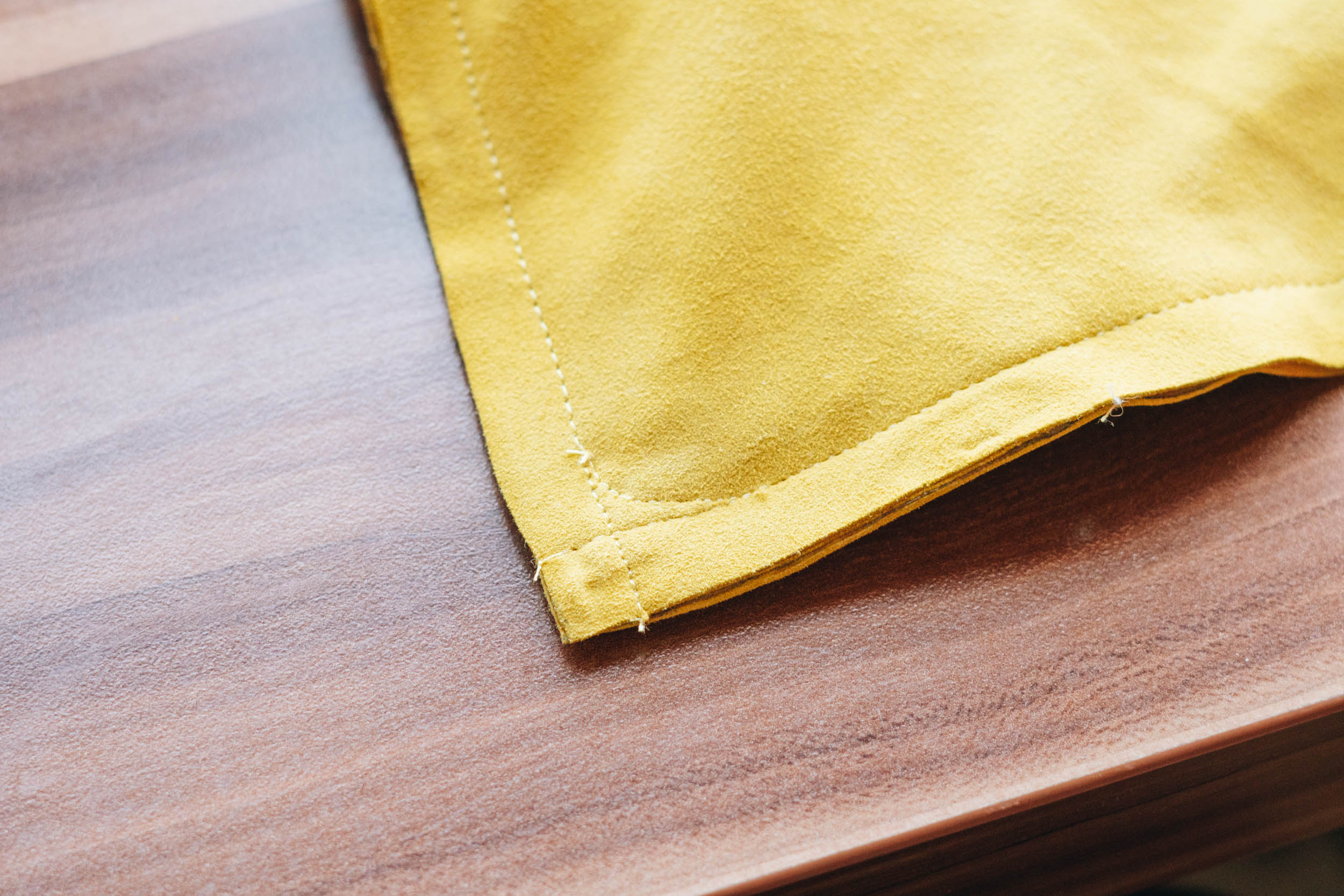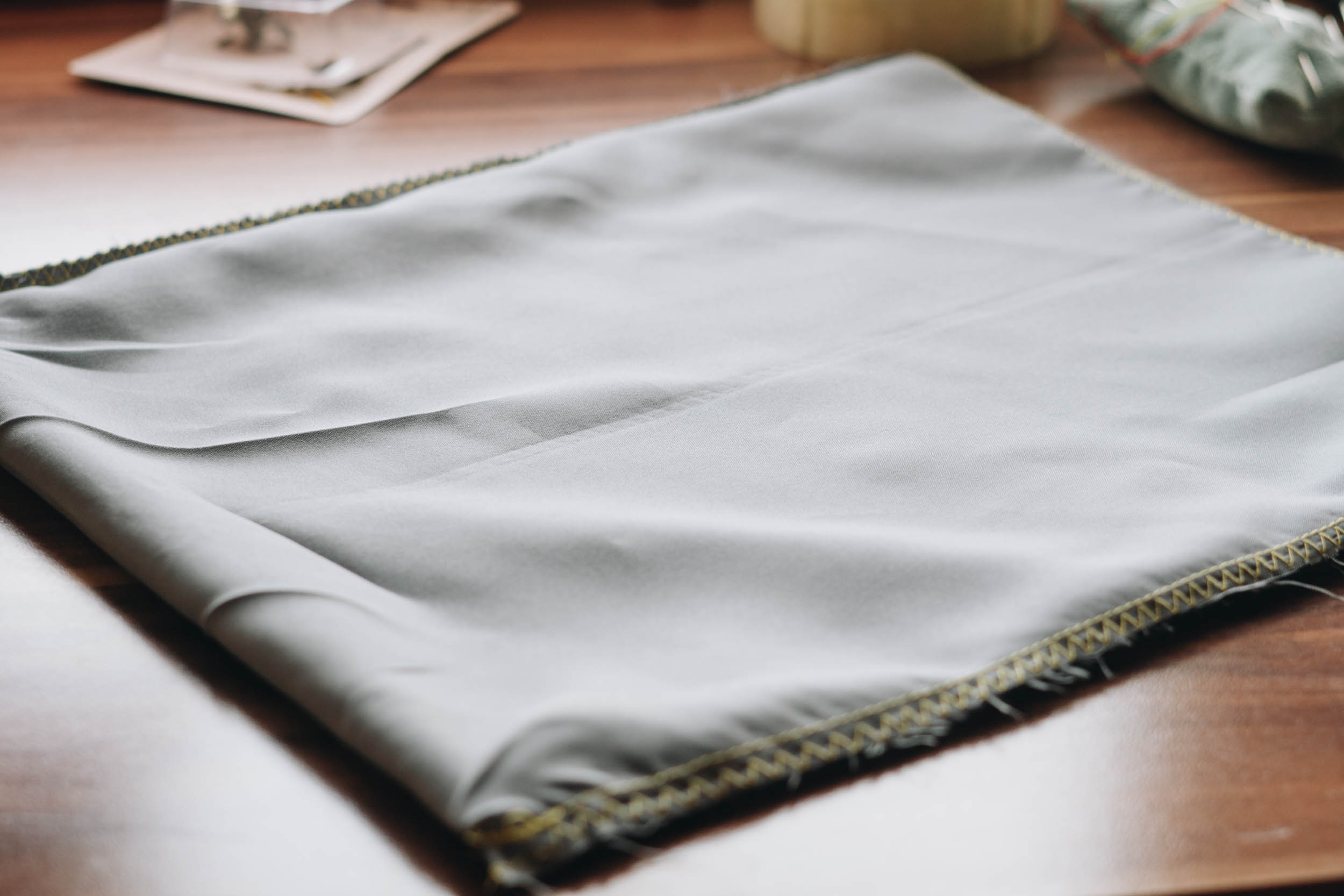 ​​Nähe Taschenkörper rechts auf rechts zusammen und achte dabei darauf dass keine Fransen oder Schlaufen in die Naht rutschen.