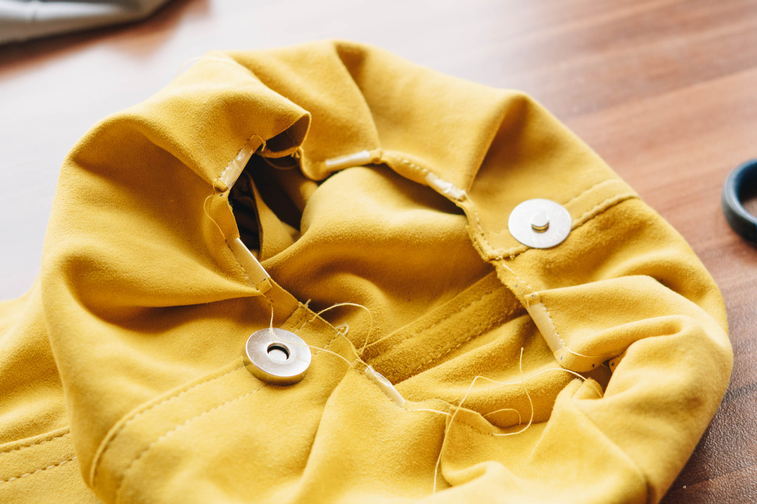 ​​Befestige den Magnetknopf und nähe Innenfutter und Tasche zusammen.