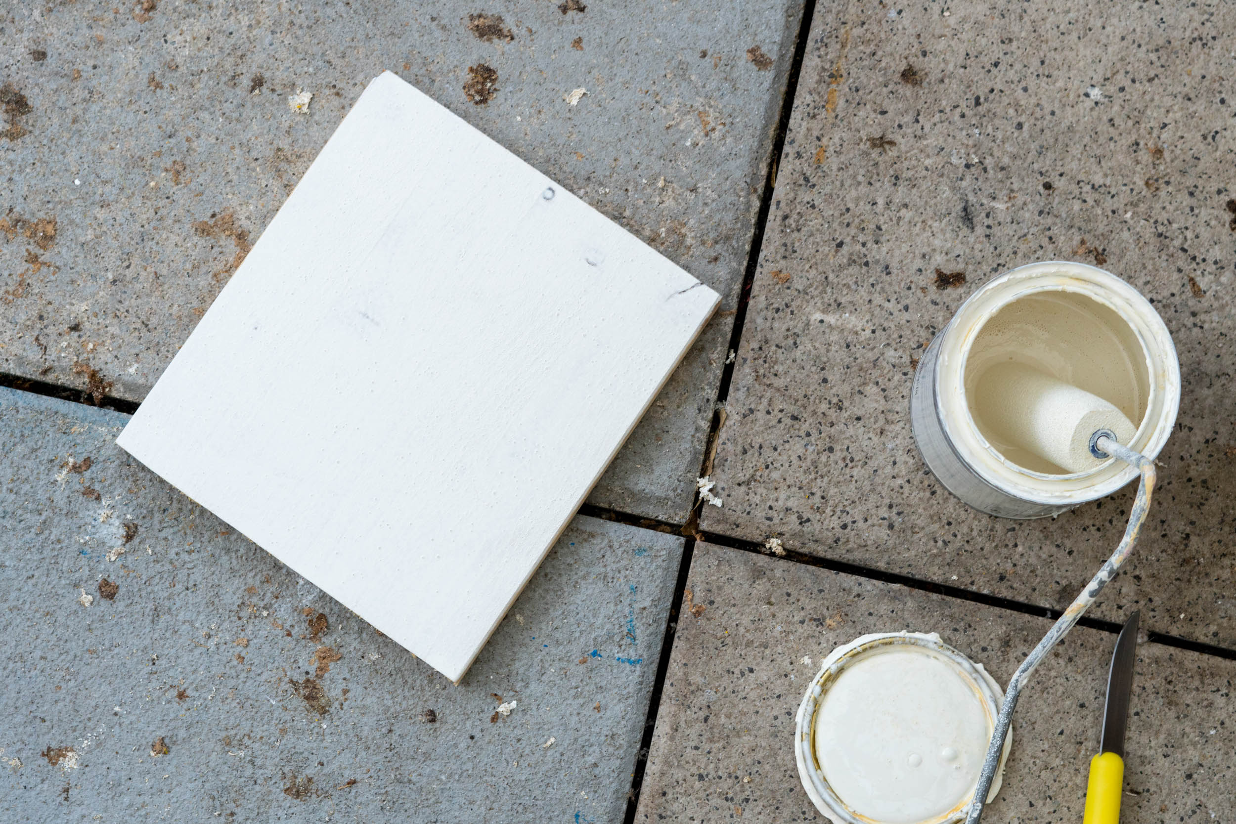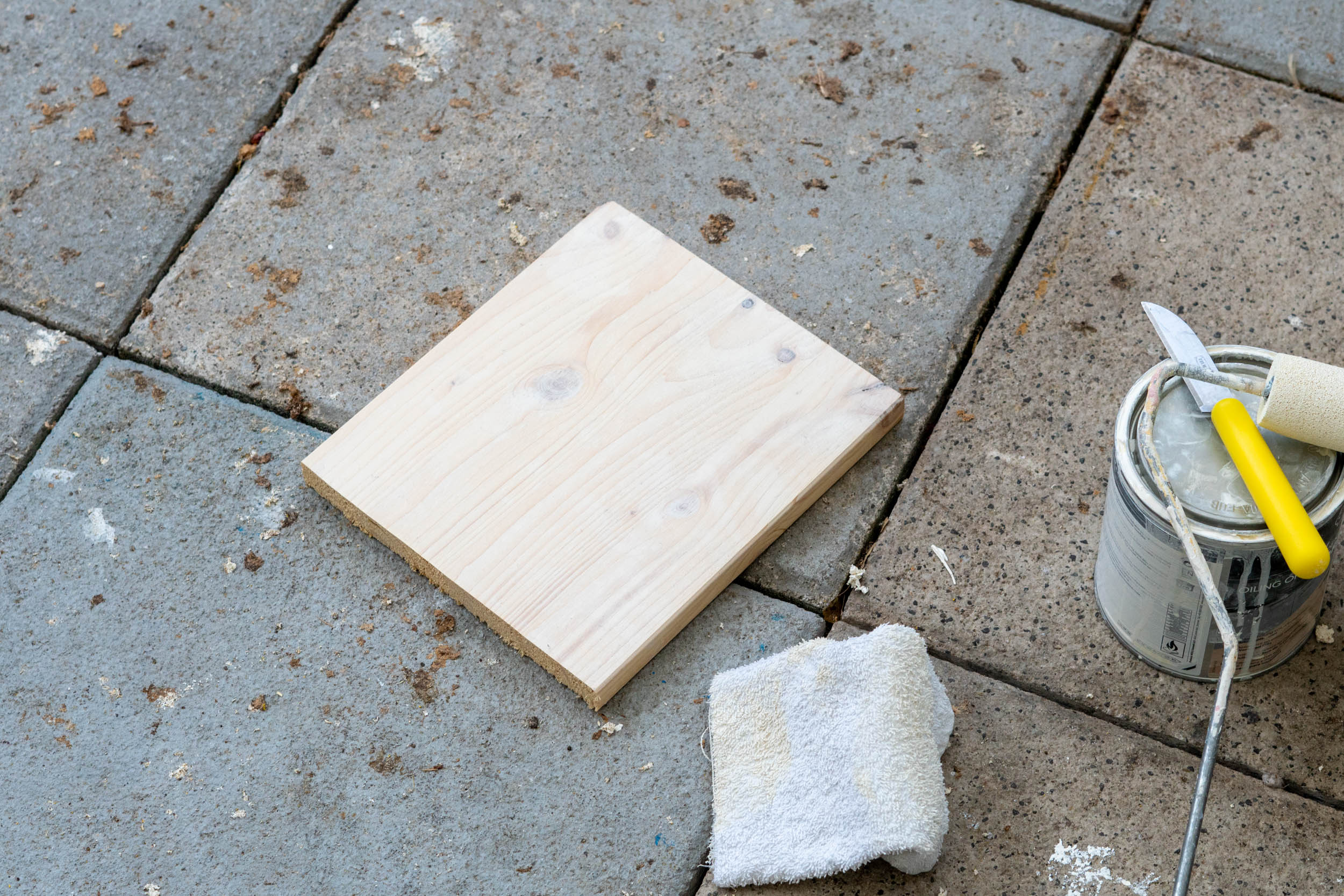 Lass deine Regalbretter am besten gleich im Baumarkt auf die richtige Länge zuschneiden. Schleife die Kanten glatt und alle Flächen ab. Bereite die Bretter danach mit einem feuchten Tuch von Staub.