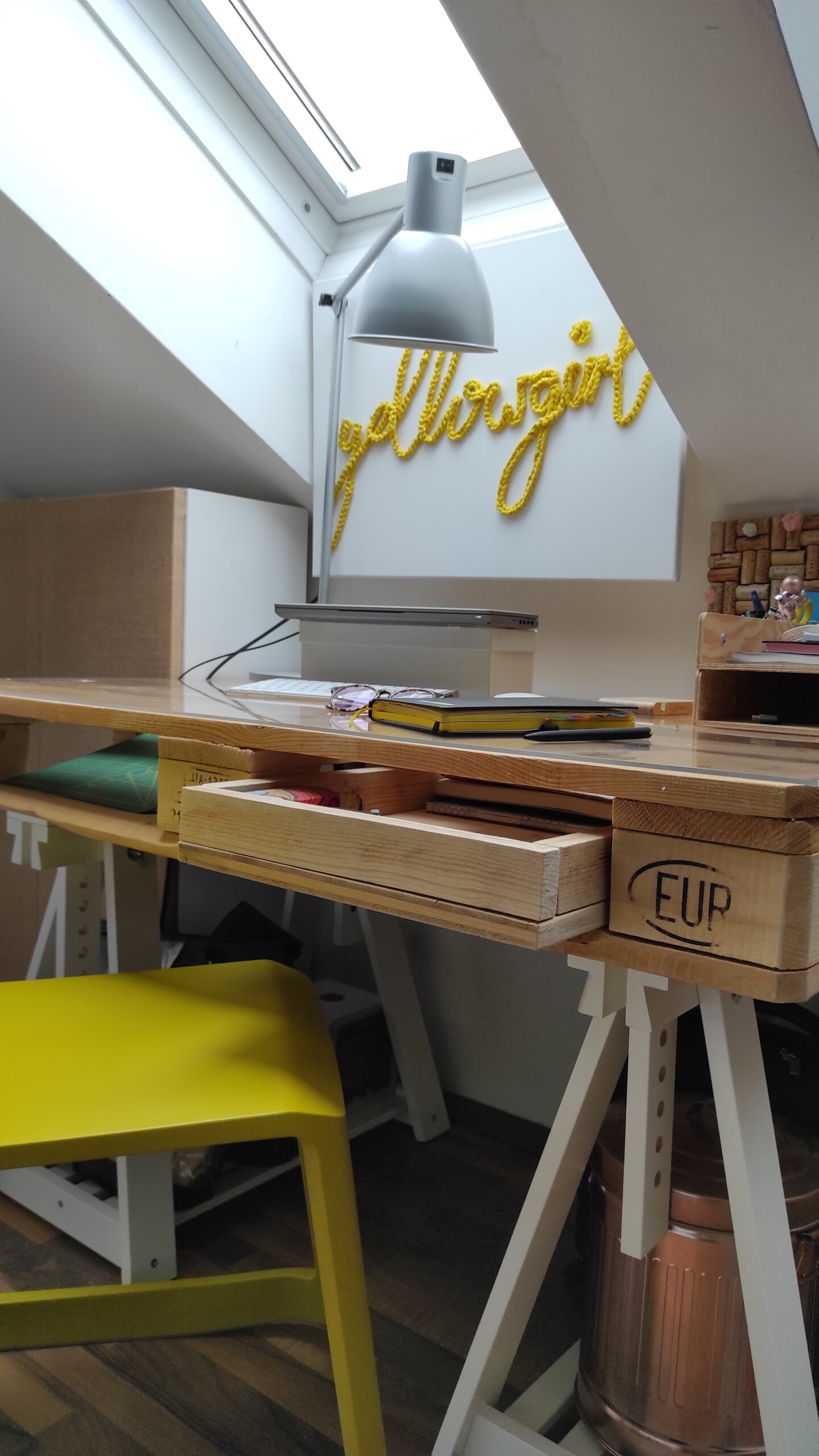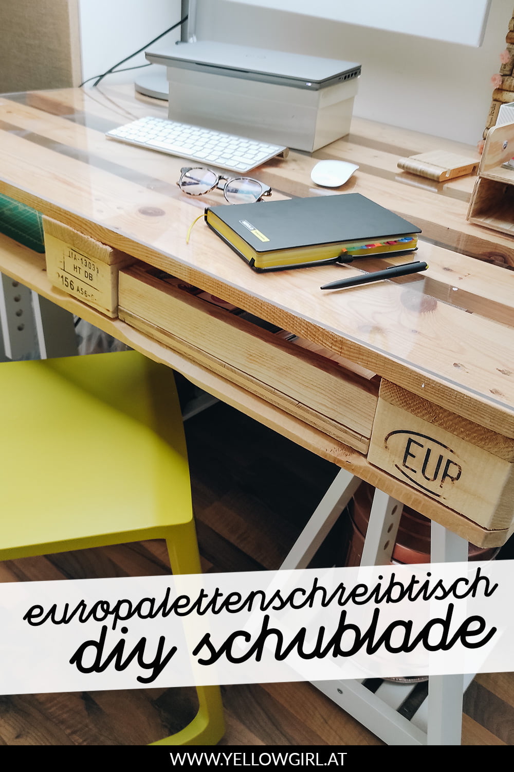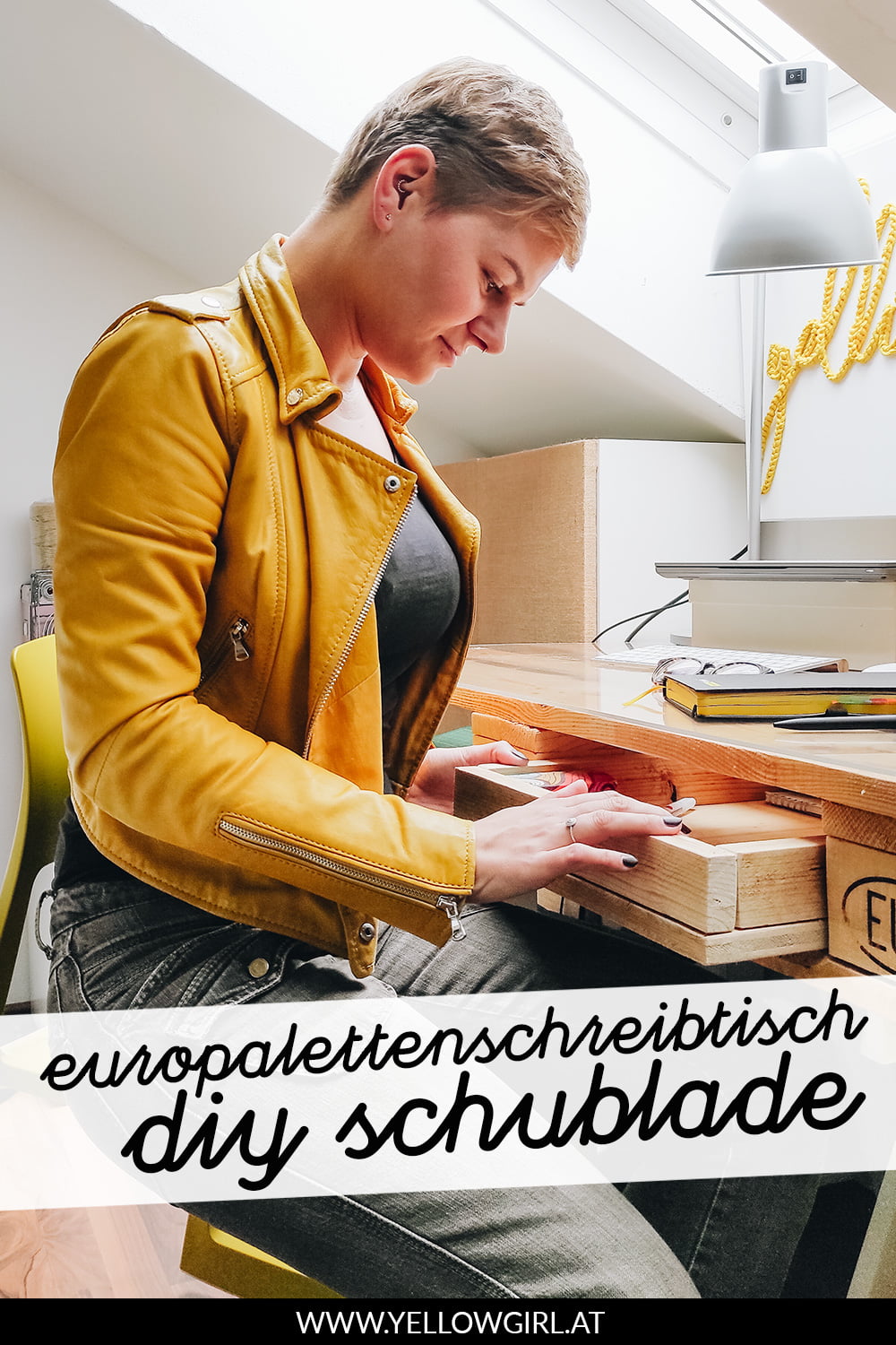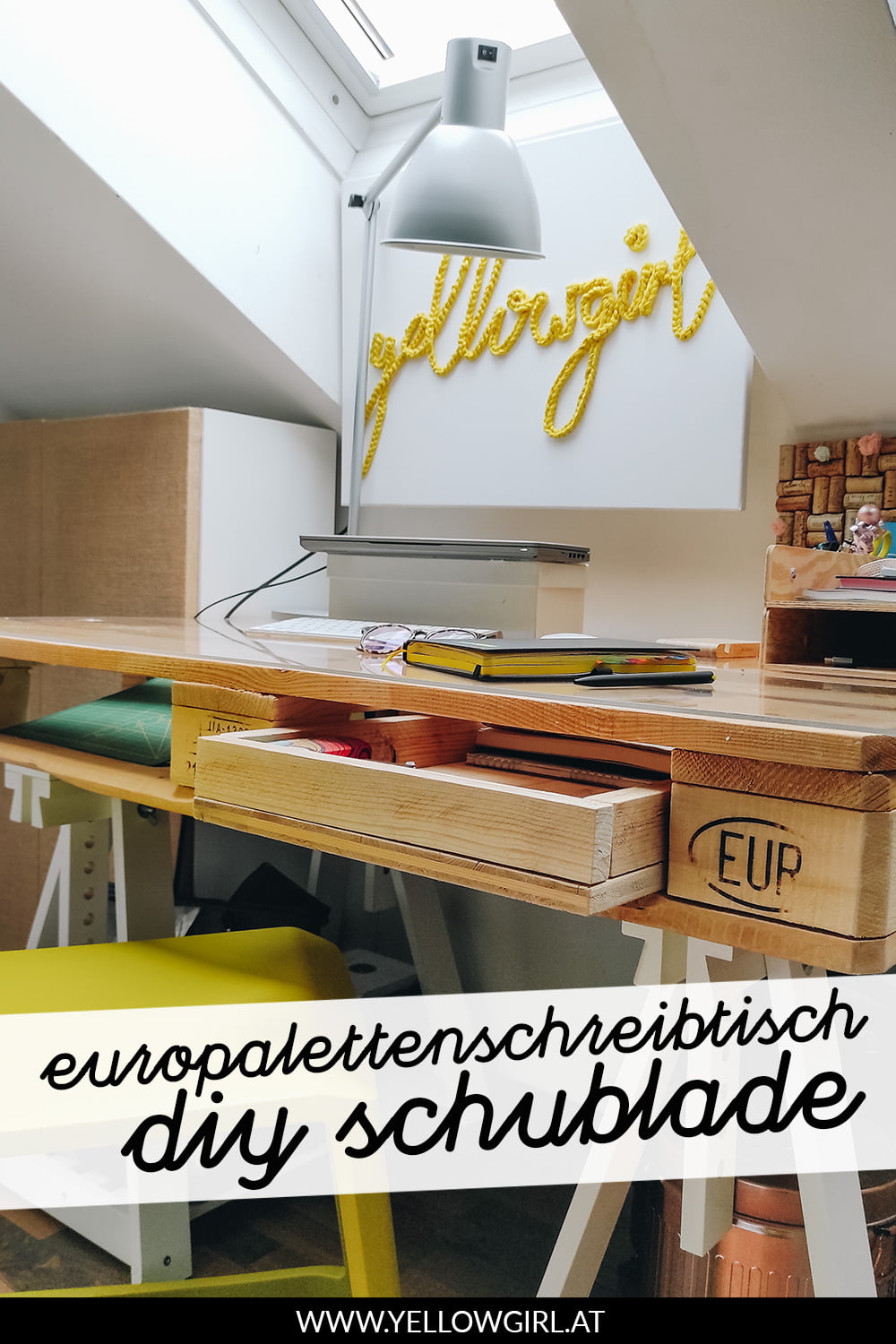 So sehr ich meinen Europaletten-Schreibtisch liebe, eines fehlte ihm. Eine Sache die jeder Schreibtisch haben sollte. Eine Sache die Dinge die nicht rumliegen sollten in ihren unendlichen Weiten verschwinden lässt und gleichzeitig die Dinge die du immer brauchst griffbereit aufbewahrt. Die Rede ist von der Schreibtischschublade! Ja, ihr lest richtig! Ich schreibe einen Liebesbrief an meine Schreibtischschublade. Mit ihr ist es wie mit Männern – erst wenn man keine hat, erkennt man ihren Wert. Und jetzt zu den Fakten. Europatellen haben keine Schubladen. Ich hätte auch keine fertigen Laden beim Baumarkt gesehen die man für diesen Zweck verwenden könnte. Die Idee war geboren. Bohren, Säge, Schleifen und Lackieren liegt mir eh, da ist der Weg zum Laden tischlern auch nicht mehr weit!