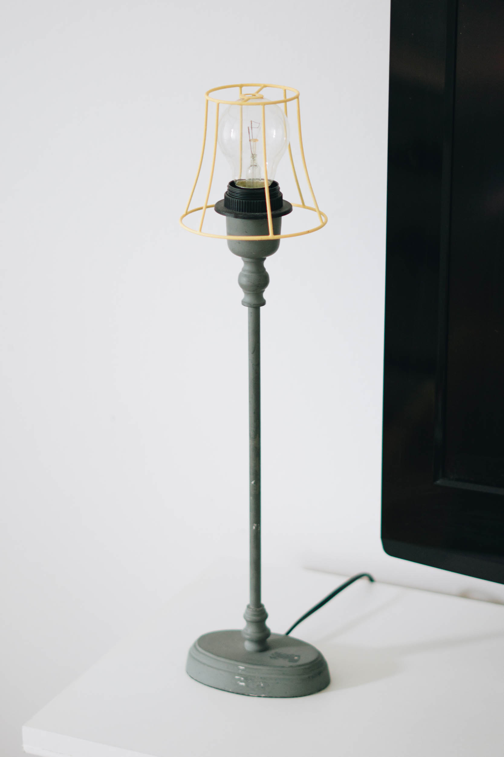 Auf der Suche nach passenden Lampenschirmen (und es ist gar nicht so leicht einen so kleinen Lampenschirm zu finden wie ich ihn mir vorgestellt habe) stolperte ich über ziemlich teure Designerlampen im Skelett-Style. Die Lampenschirme in gewünschter Größe entdeckte ich schlussendlich gebraucht und verpasste ihnen den Skelett-Style. Wie schnell und einfach das geht zeige ich euch hier: