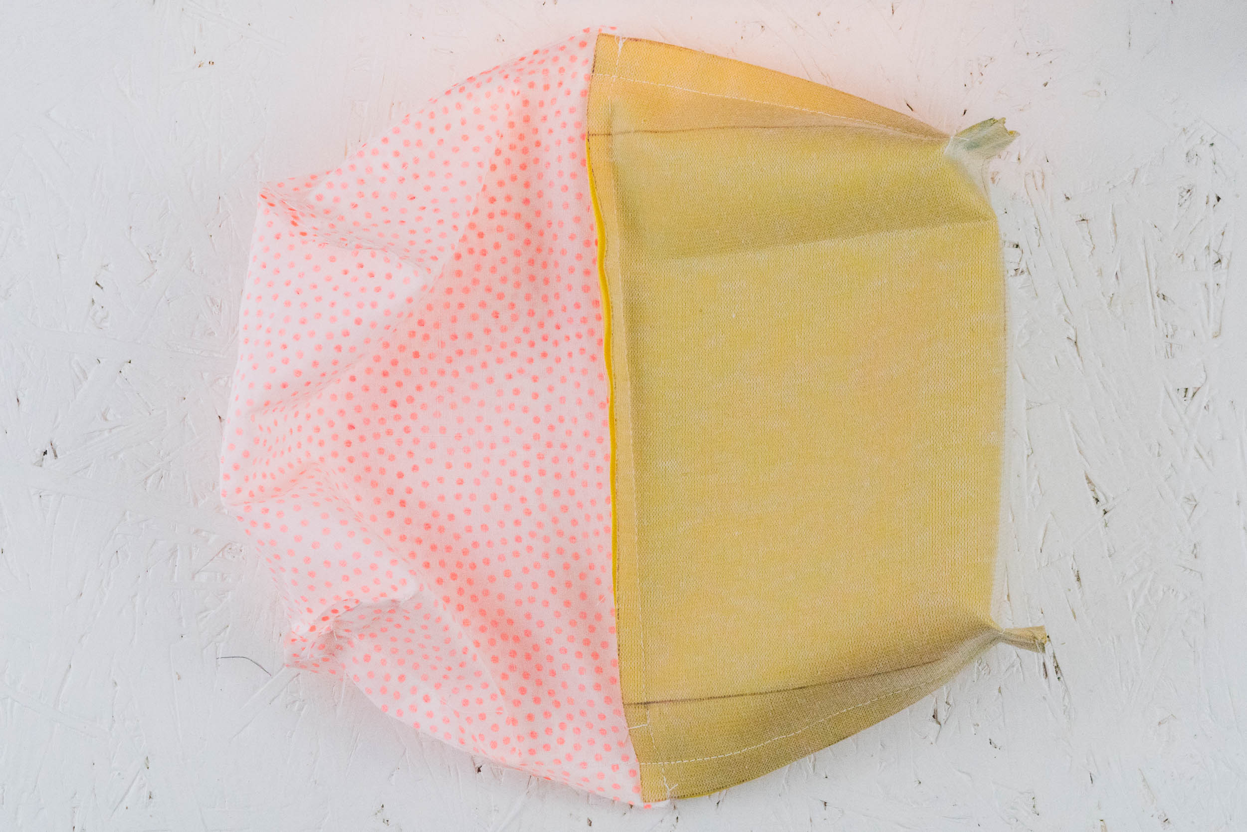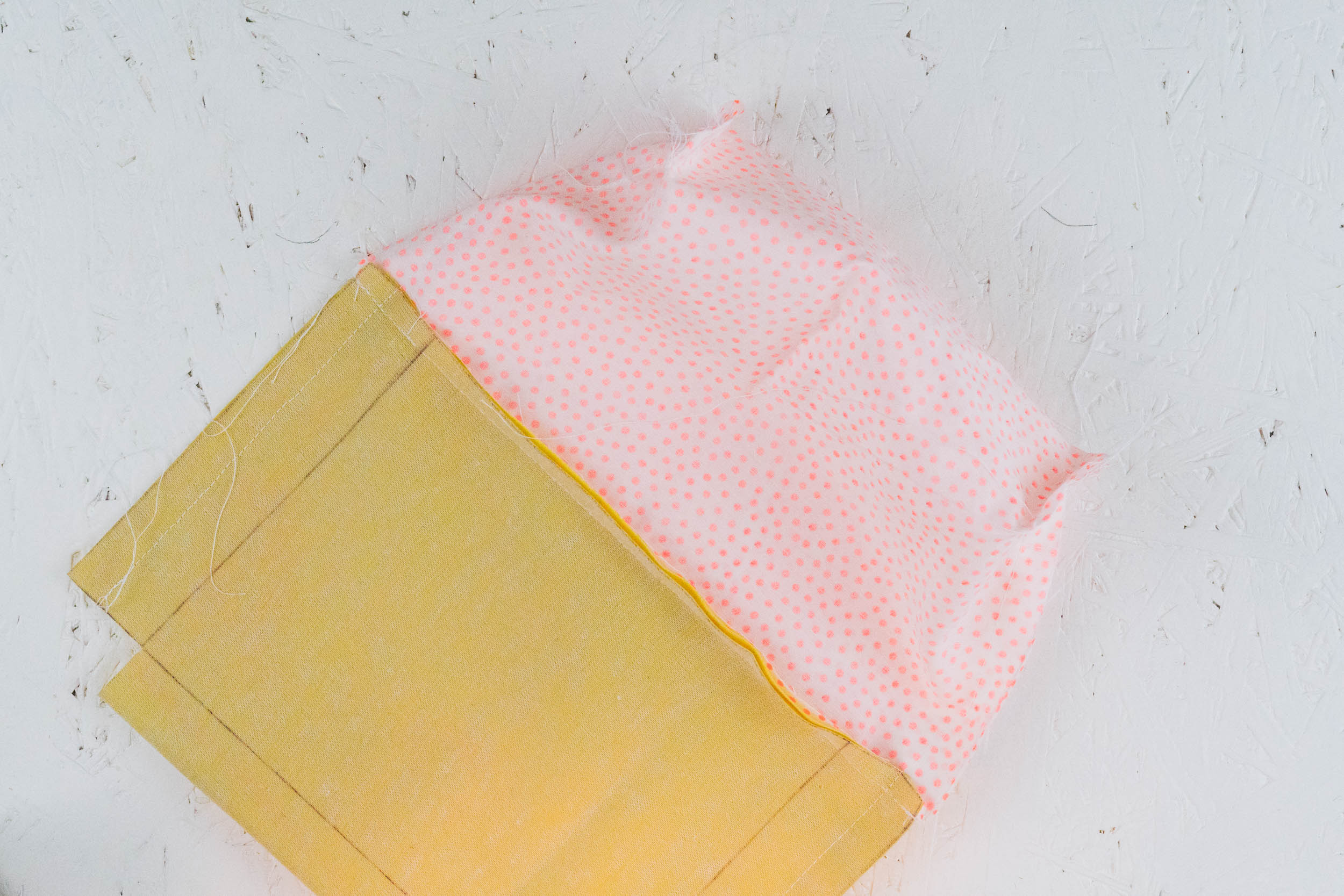Nun drehe die Tasche auf rechts, indem du alles durch das vorher im Innenfutter ausgesparte Loch ziehst. Nähe das Loch per Hand zu.