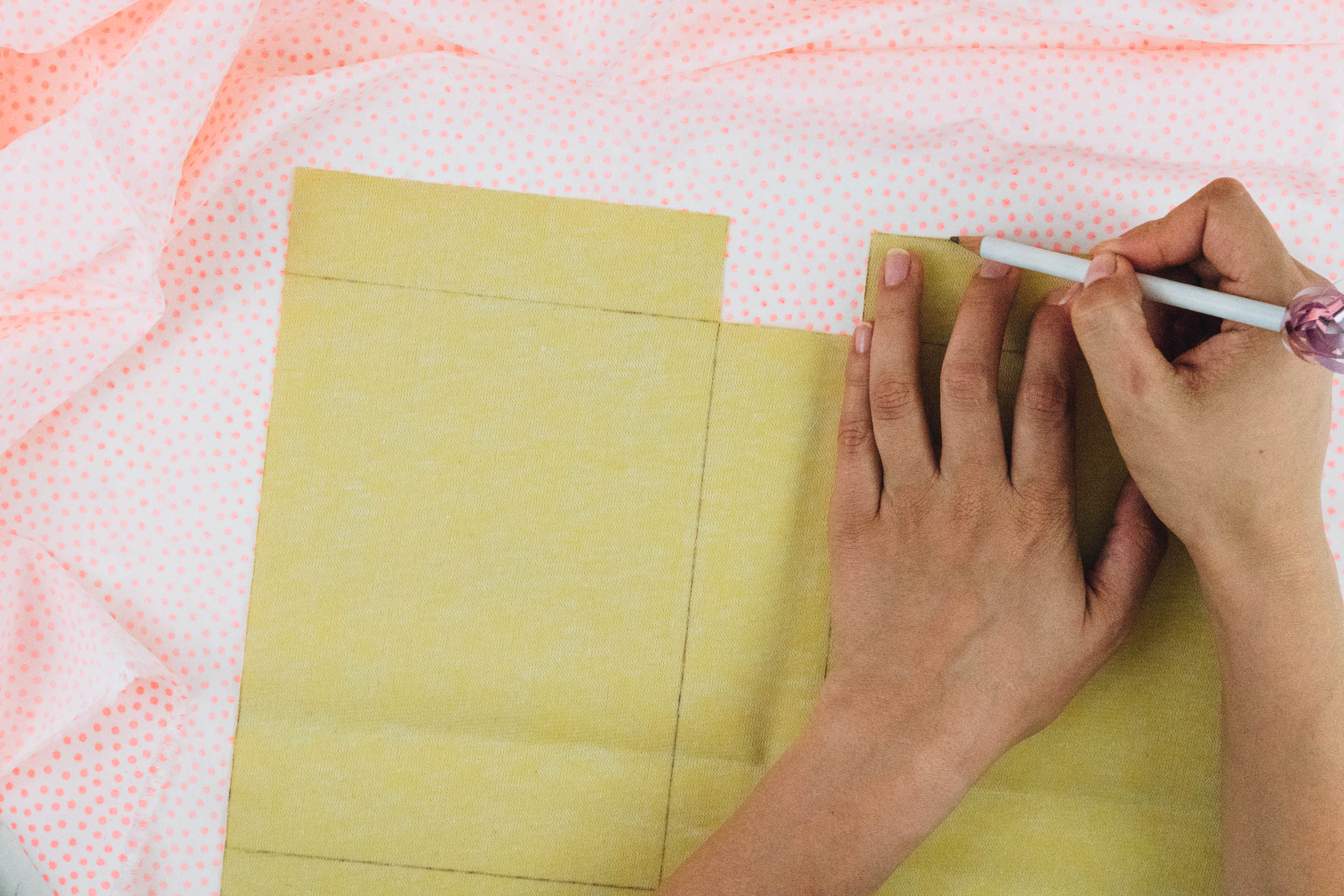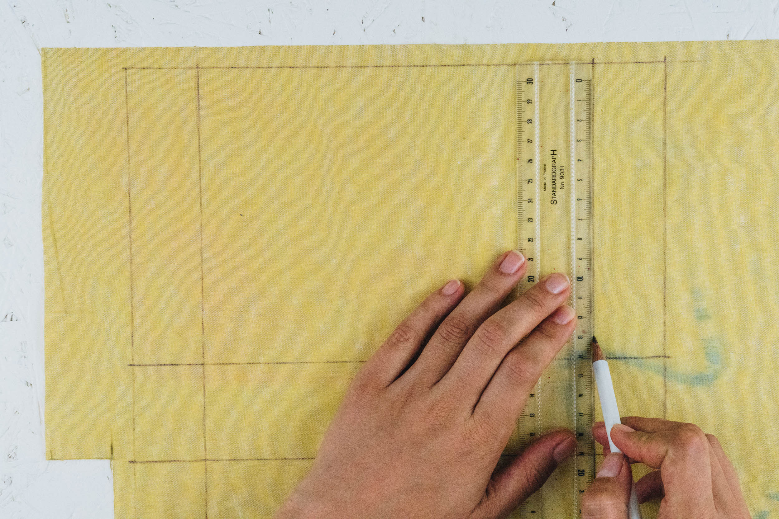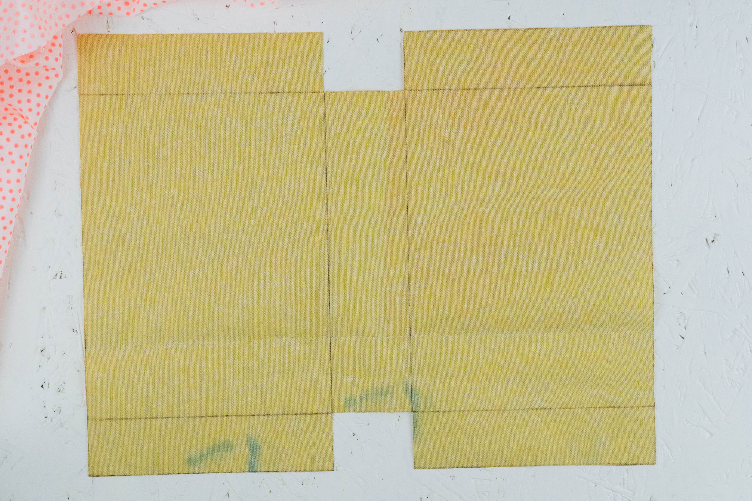 Schneide einen Streifen in der Größe 62 cm x 30 cm und zwei Streifen in 25 cm x 12 cm.