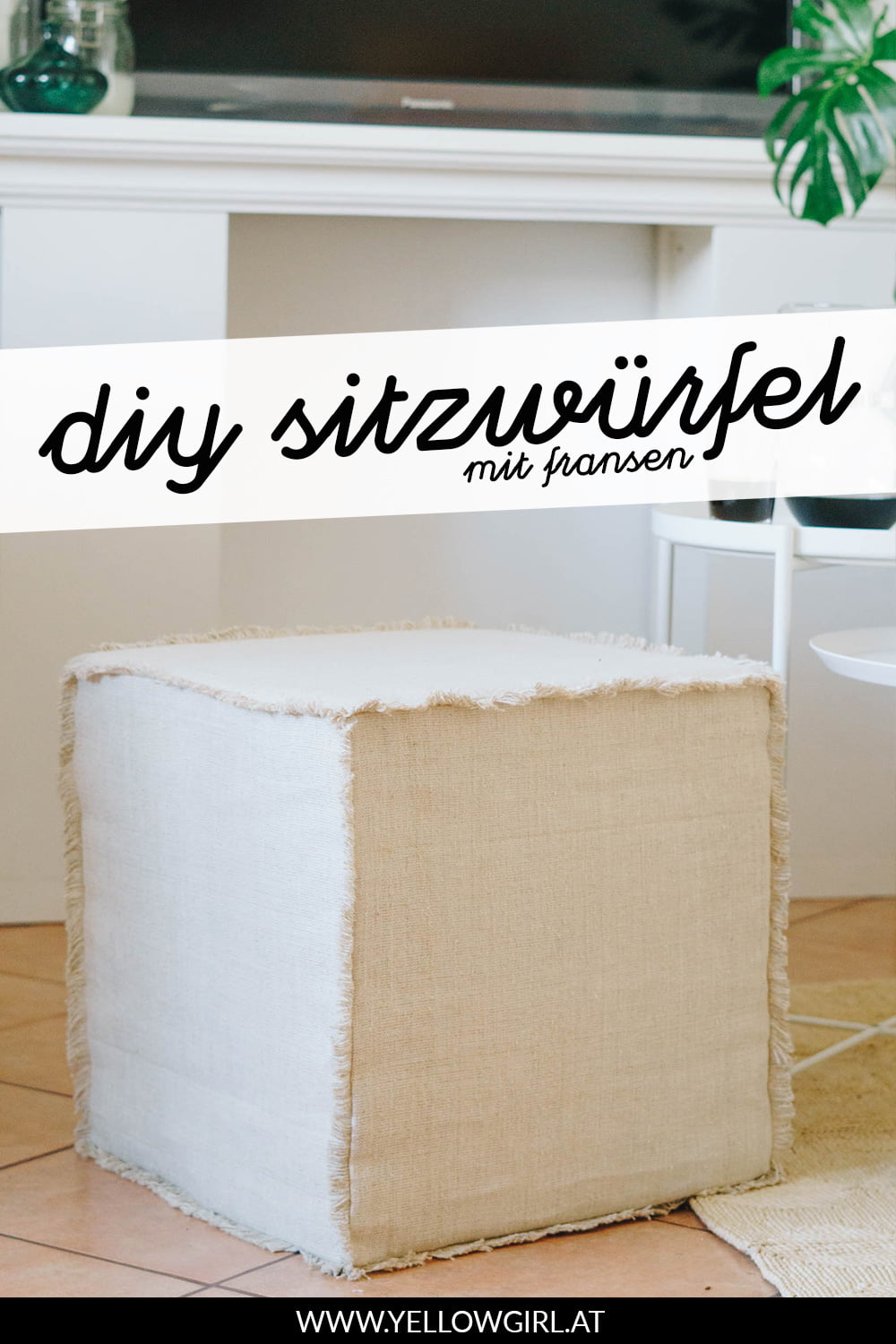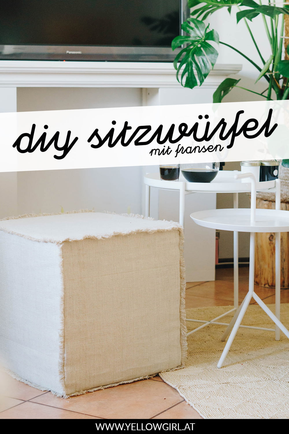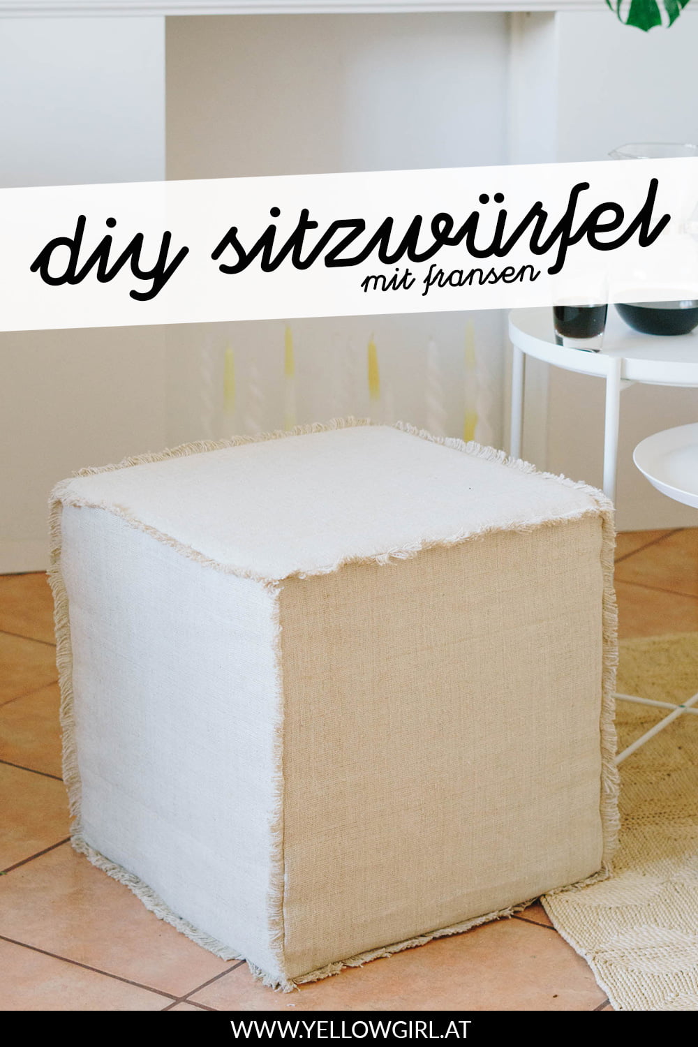 Mein großer DIY Sitzwürfel ist ganz gut bei euch angekommen! Heute folgt die Anleitung für den kleinen Würfel mit Fransen. Zur der Idee kam es eigentlich aus der Not heraus, denn wir hatten einfach zu wenig Leinenstoff für den gesteppten Rand. Egal ob Zufall oder geplant – die Würfel sehen super aus und ich kann mich nicht entscheiden welcher mir persönlich besser gefällt!