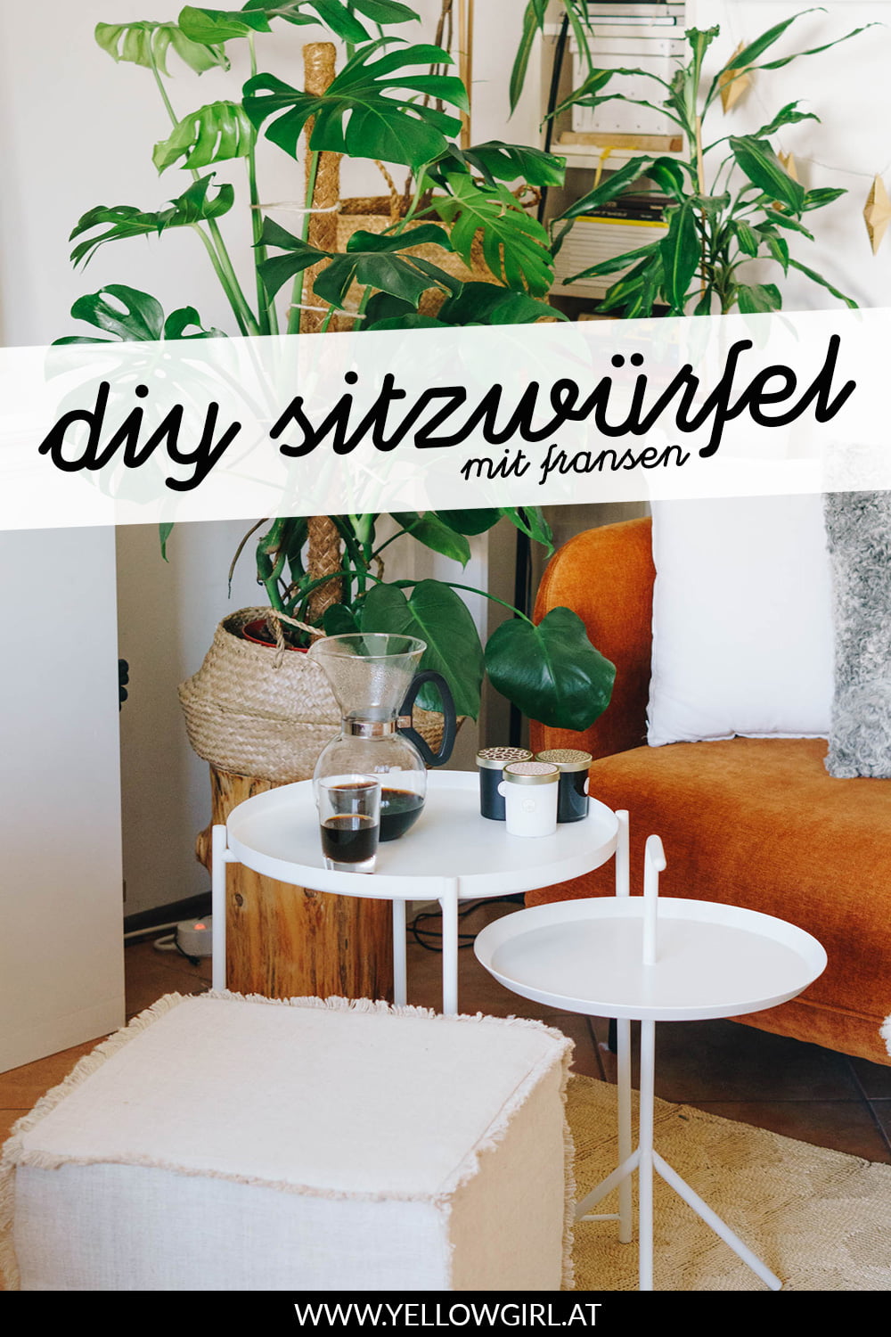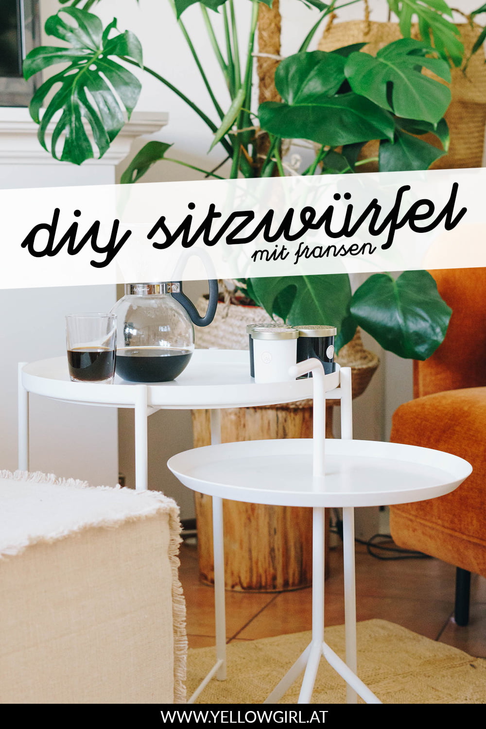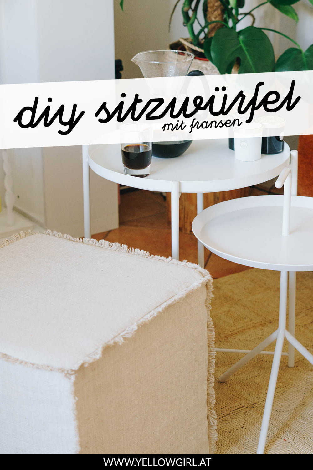 Mein großer DIY Sitzwürfel ist ganz gut bei euch angekommen! Heute folgt die Anleitung für den kleinen Würfel mit Fransen. Zur der Idee kam es eigentlich aus der Not heraus, denn wir hatten einfach zu wenig Leinenstoff für den gesteppten Rand. Egal ob Zufall oder geplant – die Würfel sehen super aus und ich kann mich nicht entscheiden welcher mir persönlich besser gefällt!