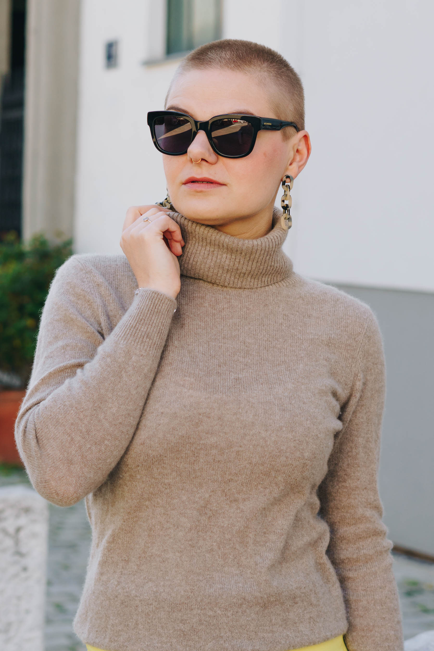 Auf den Bildern trage ich einen Skort und Socks Shoes von Zara, einen Kaschmir Pulli, eine Army Jacke von Malvin Germany, Ohrringe von Asos und eine Sonnenbrille von Messy Weekend.