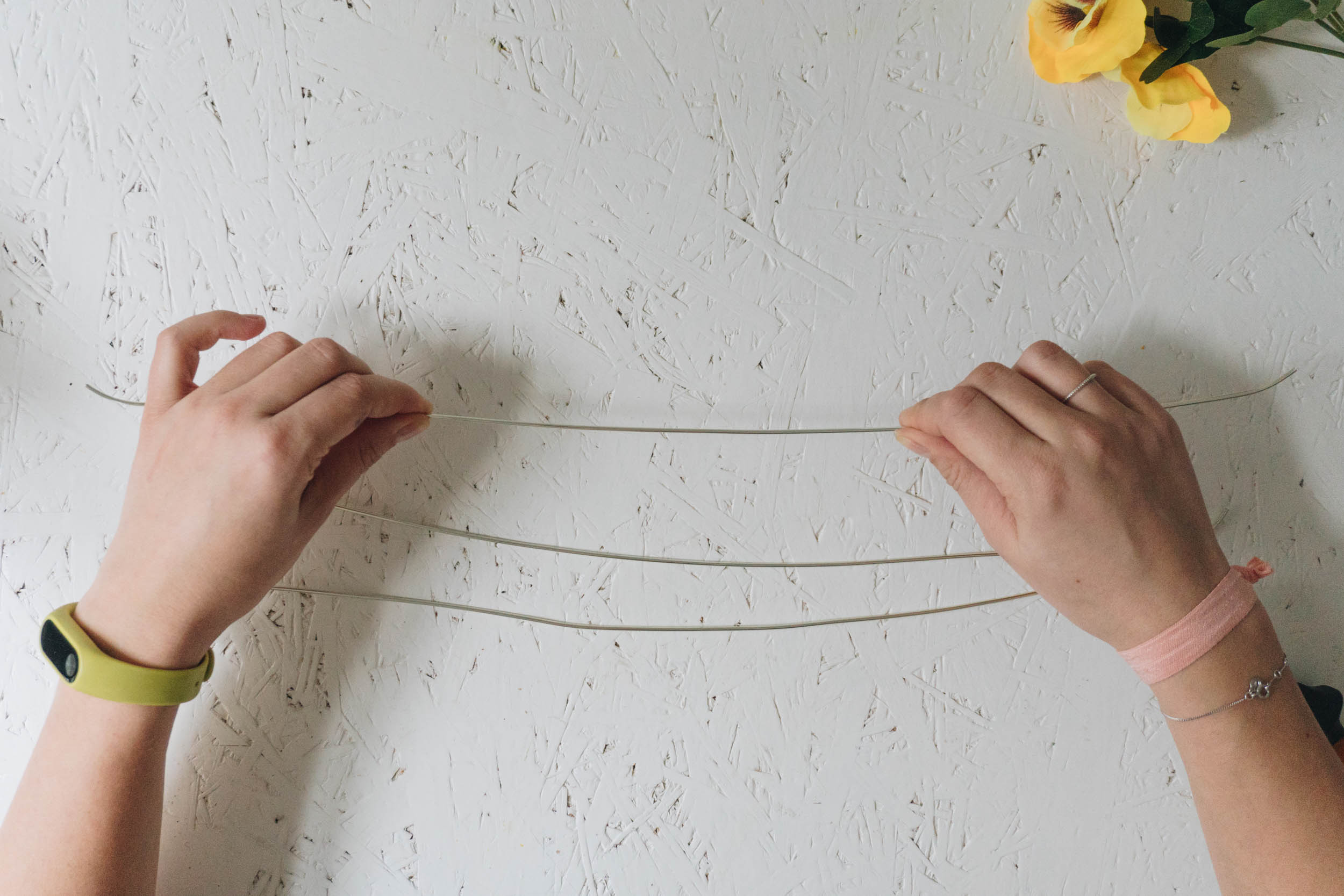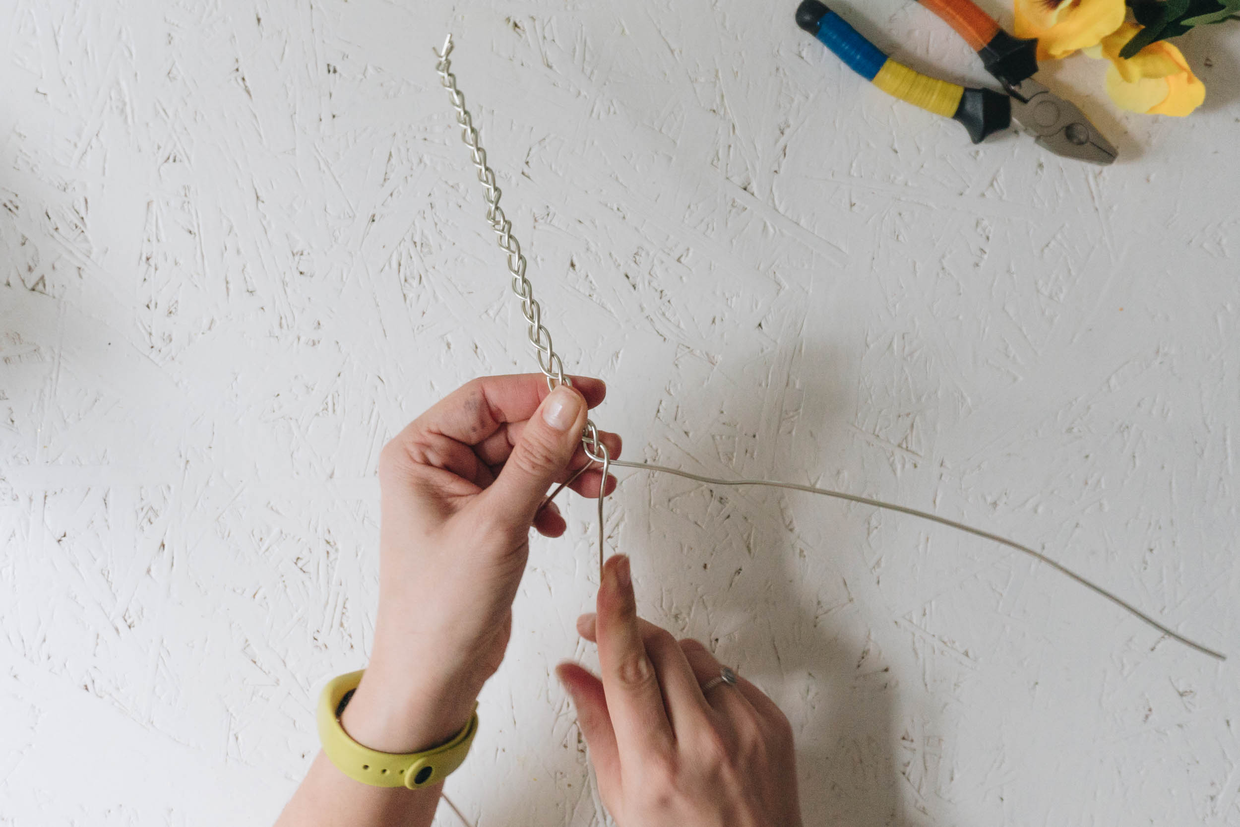 Als erstes schneidest du drei ca. 40cm lange Stücke Draht ab und streichst sie gerade.