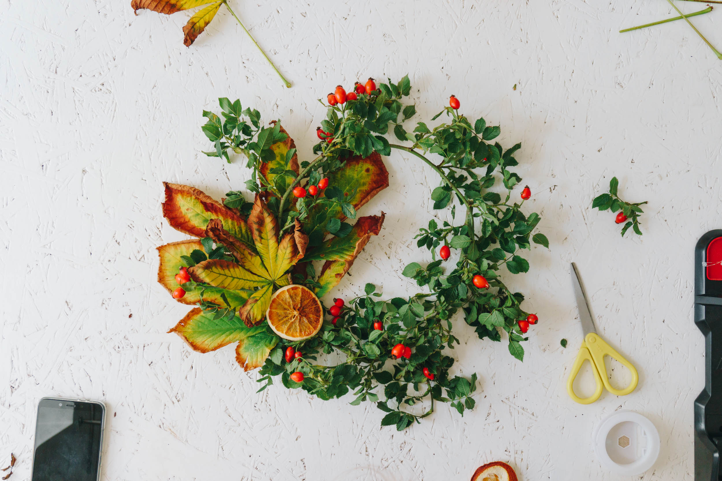 Für einen DIY Herbstlaub-Türkranz brauchst du: