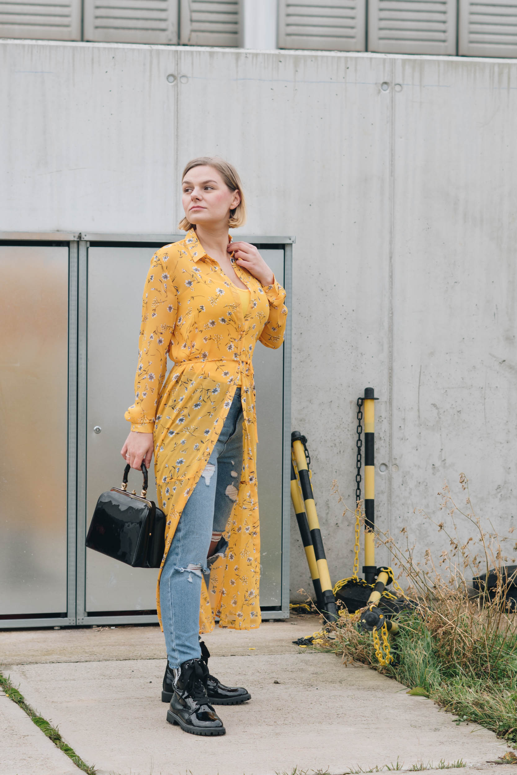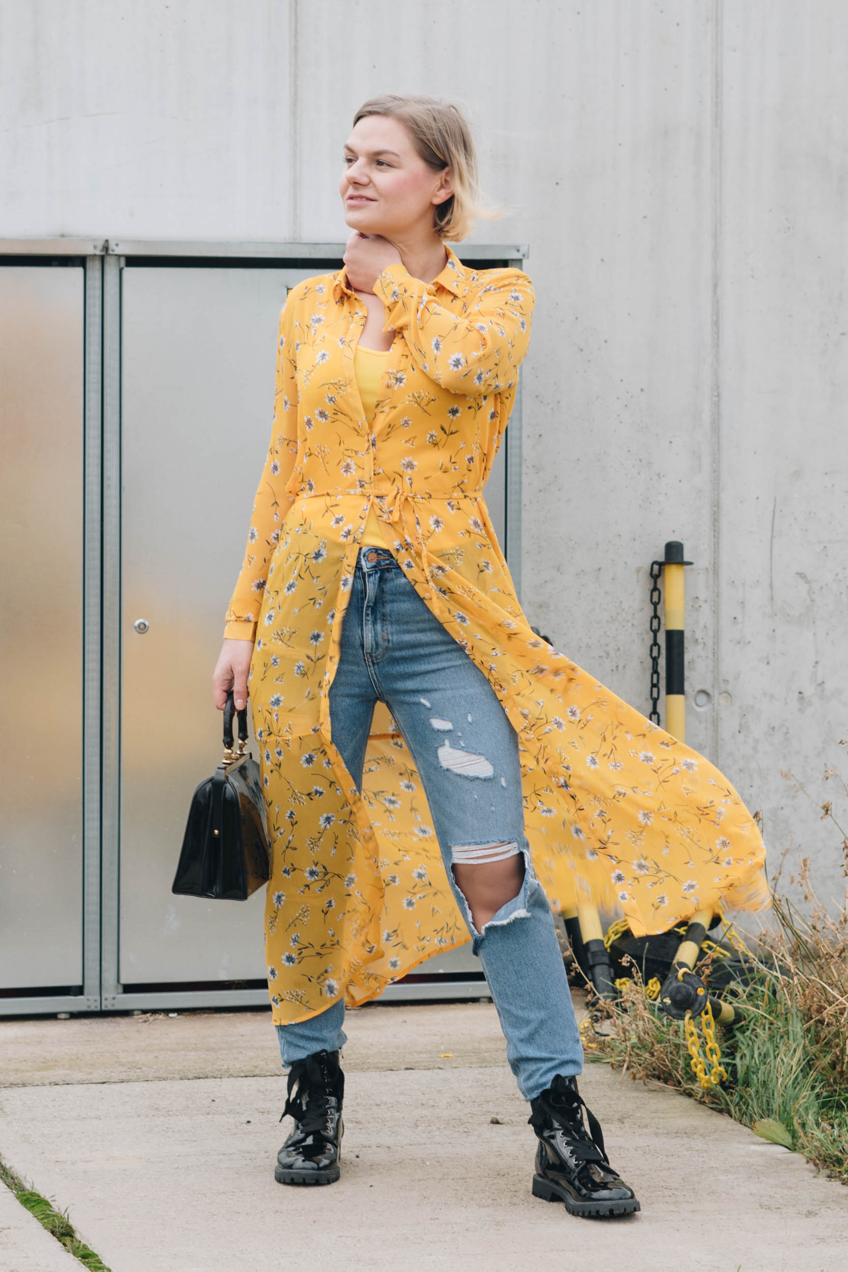 Auf den Bildern trage ich ein Sommerkleid von ONLY inklusive Unterkleid (war dabei), eine Mom-Jeans im Used-Look von New Look, Boots von omg! und Vintage Tasche.