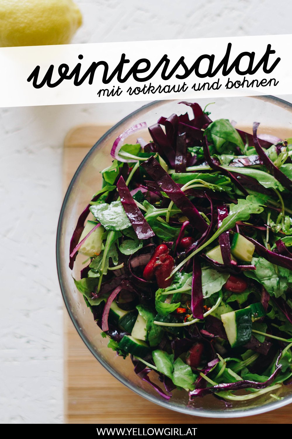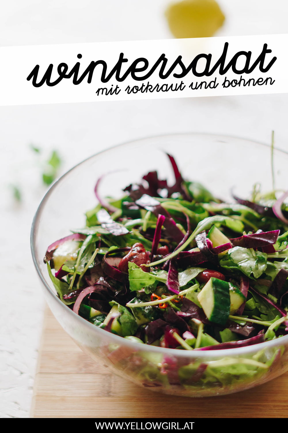 Auch wenn man mit Winter eher warme Suppen und Eintöpfe verbindet, esse ich auch in dieser Jahreszeit gerne Salat. Im Winter dürfen dann aber etwas andere und etwas deftigere Zutaten, wie bspw. Bohnen mit rein.