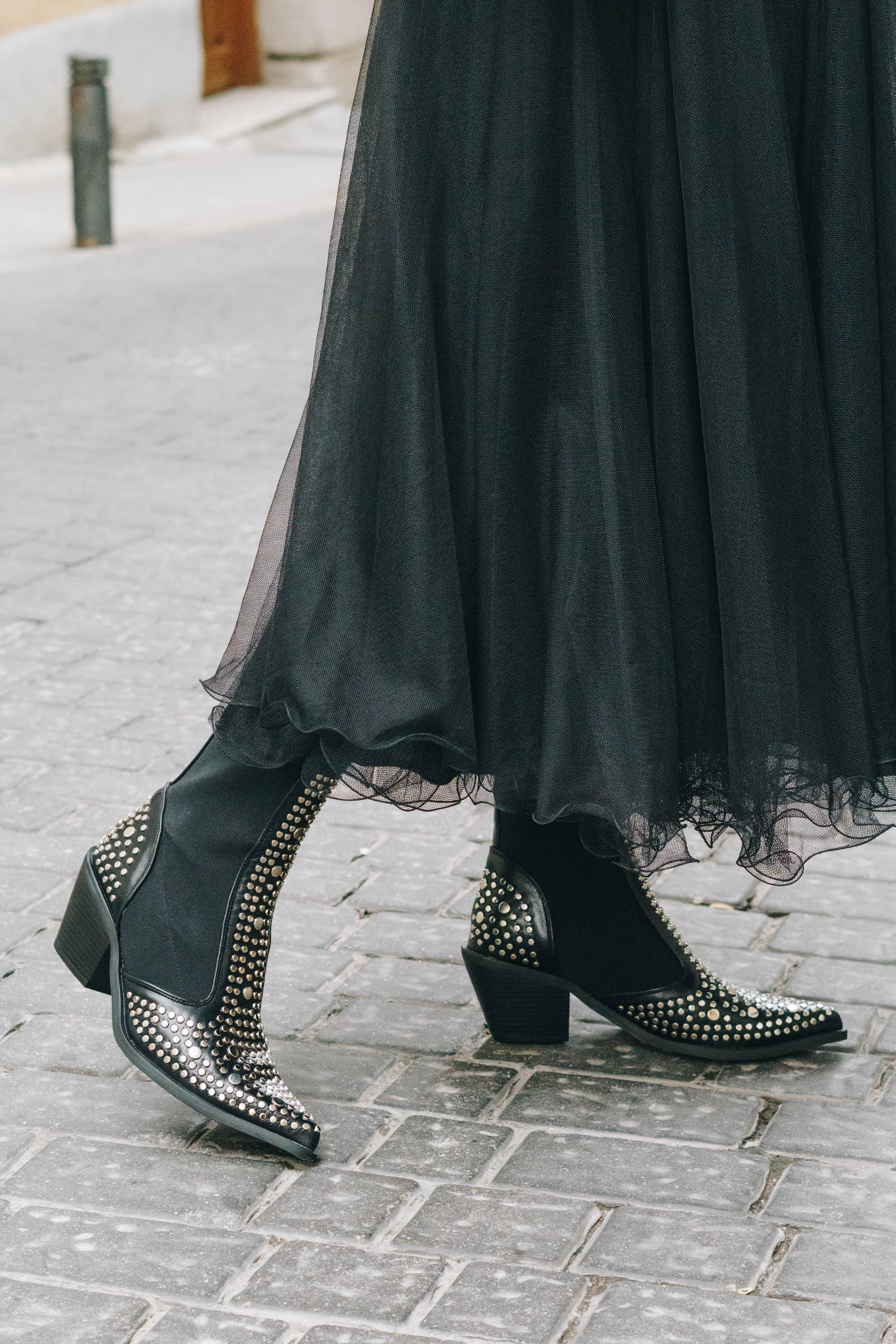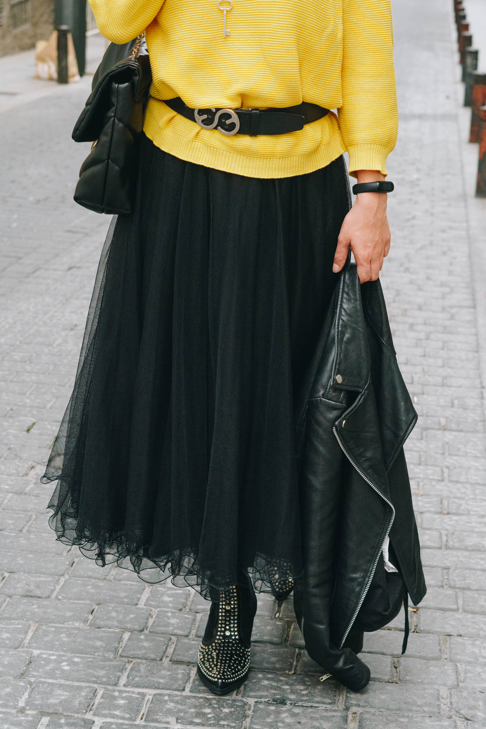 Auf den Bildern trage ich einen Pullover von Edited, einen DIY Tüllrock (Anleitung folgt), Escada Gürtel, Cowboy Boots mit Nieten, Schmuck von Tiffanys, Lederjacke von Mango und Tasche von Zara.