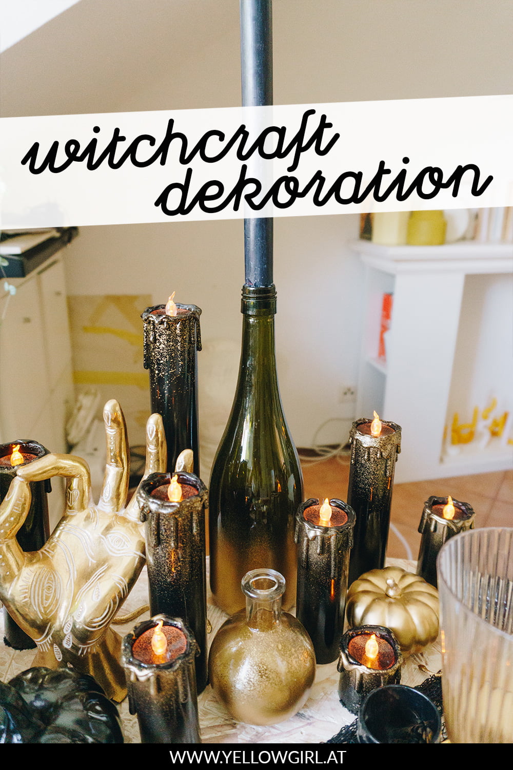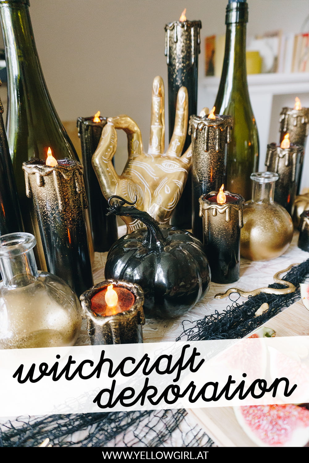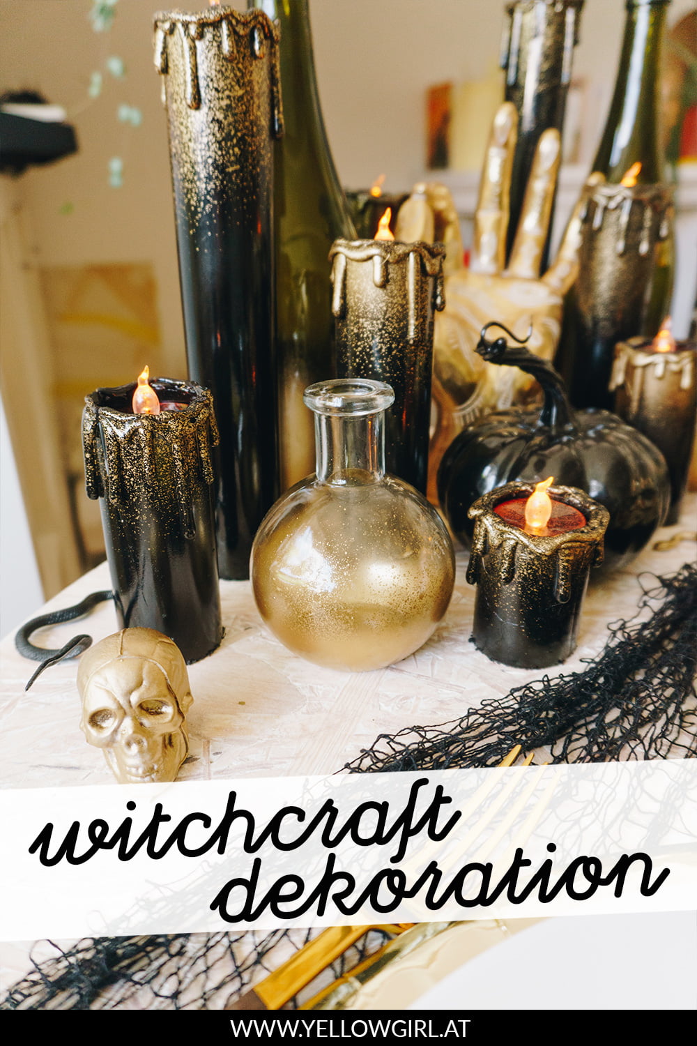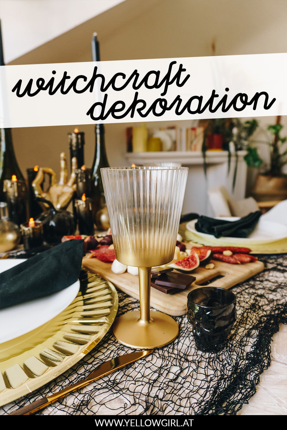 Der Full Moon Vodka Martini ist serviert und die erste Deko wird aufgestellt. Wie und womit ich meine Halloween-Tischdeko zum Thema Witchcraft gebastelt habe fasse ich euch heute zusammen.